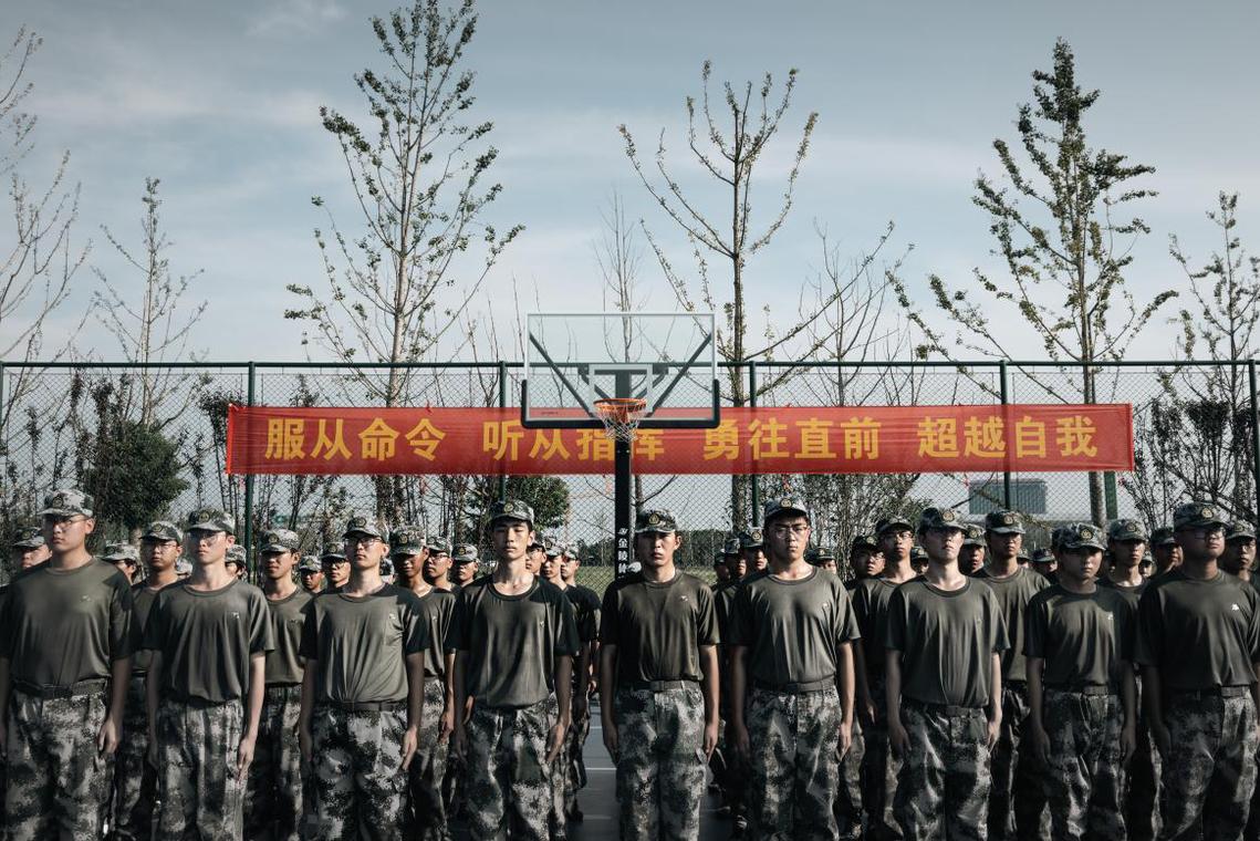 烈日当空,训练场上回荡着教官铿锵有力的口令声。新生们挺直脊背,目光如炬,每一个动作都力求标准整齐。