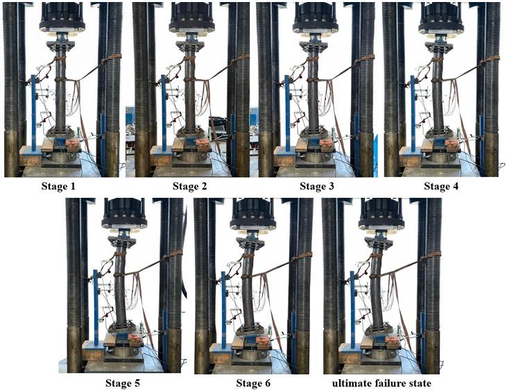 针对这一问题,课题组采用“试验研究+数值模拟”相结合的方法,系统揭示了LBST柱在偏心受压状态下的力学性能与破坏机理。研究完成了28个LBST试件的单轴偏心受压试验,重点分析了长细比(λ)、相对偏心率(e0/D)和钢管壁厚(t)等关键参数对极限承载力、破坏模式及延性的影响。为进一步拓展参数范围,建立了高保真的有限元(FE)模型,开展了74种工况的参数化分析,验证了模型在广泛参数空间内的可靠性。