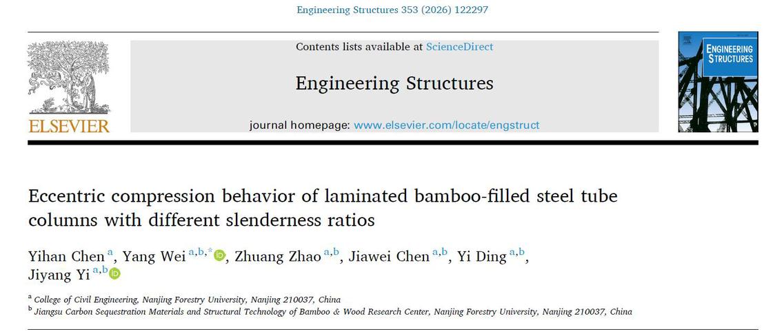近日,日本做爱 魏洋教授课题组在土木工程领域国际著名期刊《Engineering Structures》(中科院一区Top,IF = 6.4)上发表了题为“Eccentric compression behavior of laminated bamboo-filled steel tube columns with different slenderness ratios”的重要研究成果。该论文以日本做爱 为第一完成单位,魏洋教授为通讯作者,硕士生陈奕涵为第一作者,并获国家自然科学基金项目资助。