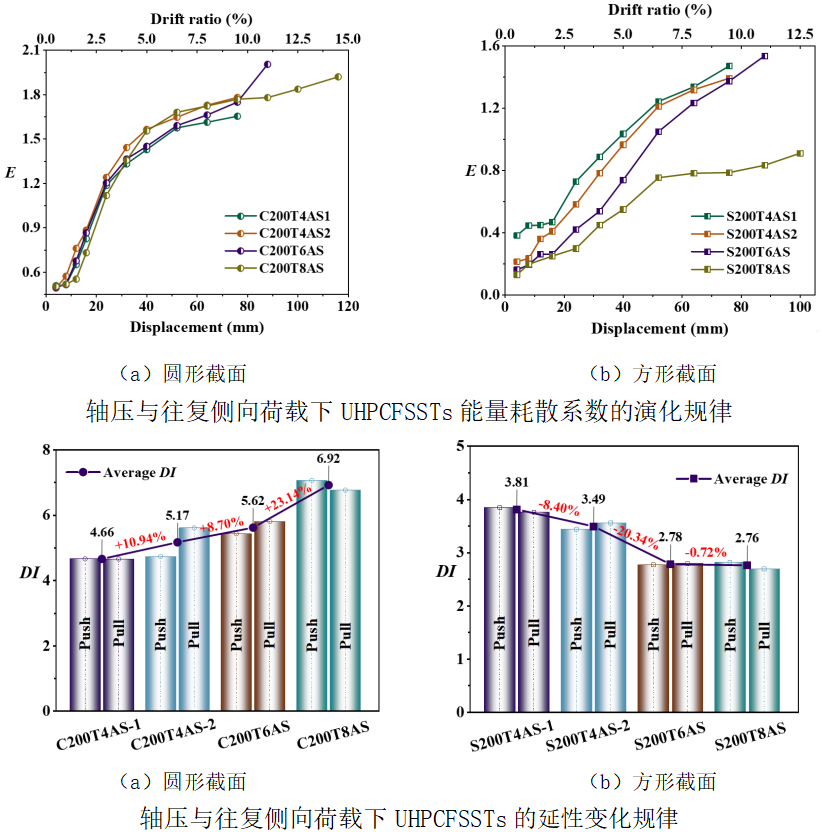 该研究证实,UHPCFSSTs在压弯复合受力状态下具备优良的协同变形与耗能能力,所建立的抗震恢复力模型为其性能化设计提供了关键理论工具。成果不仅为海洋工程、沿海及高湿盐雾等严苛环境下的工程结构应用提供了可靠依据,更有力推动了“高性能”与“长寿命”目标在工程结构中的协同实现。