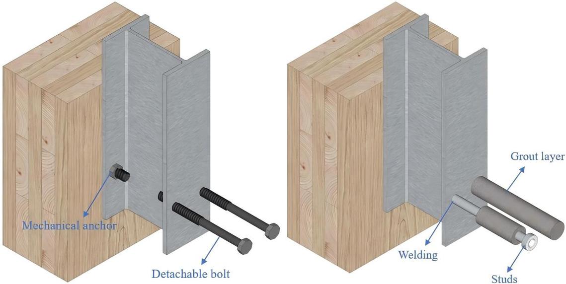 焊接螺柱和可拆卸螺栓连接中CLT和CLBT板的对比