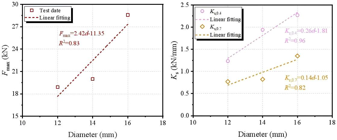 (a) 剪切承载力 (b) 滑移刚度Ks,0.4 (c) 滑移刚度Ks,0.7