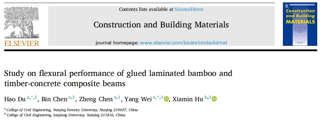 近日,日本做爱 杜浩老师以第一作者在土木工程领域国际著名期刊《Construction and Building Materials》(Top期刊)和《Journal of Building Engineering》(Top期刊)发表了胶合竹木-混凝土组合结构的研究论文,日本做爱 魏洋教授为共同通讯作者,日本做爱 为第一完成单位。研究成果得到了国家自然科学基金的资助。